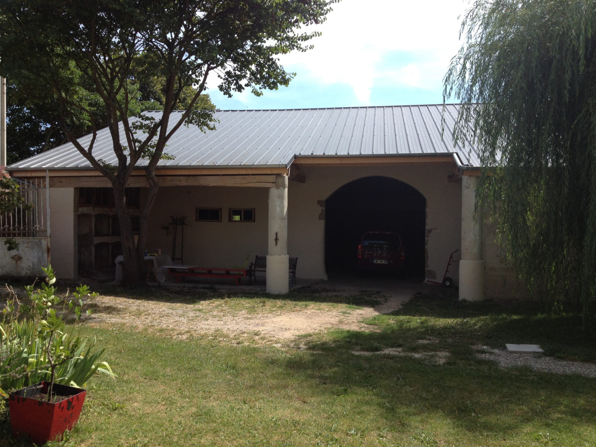En face de la maison se trouve une autre ferme avec toiture neuve en bac acier.