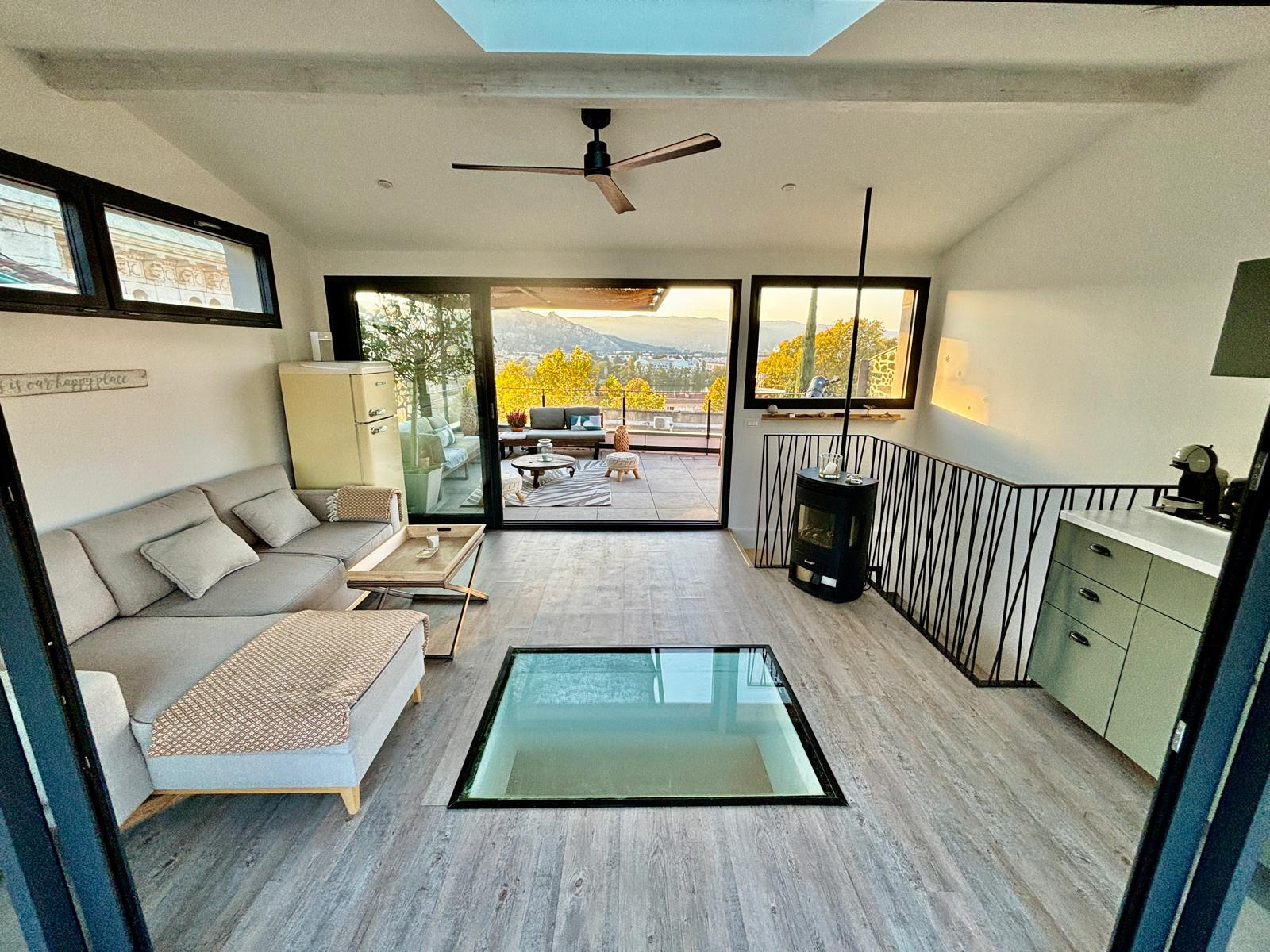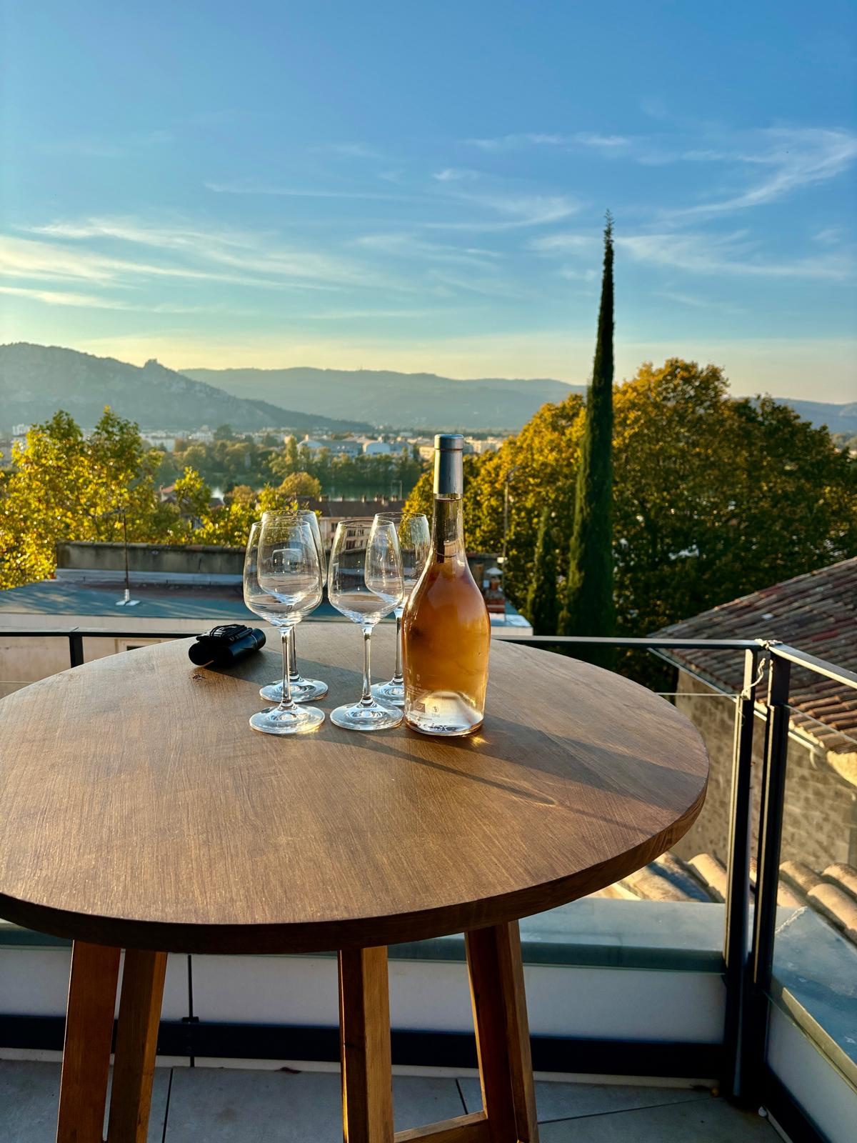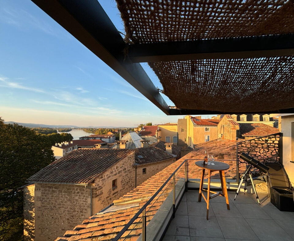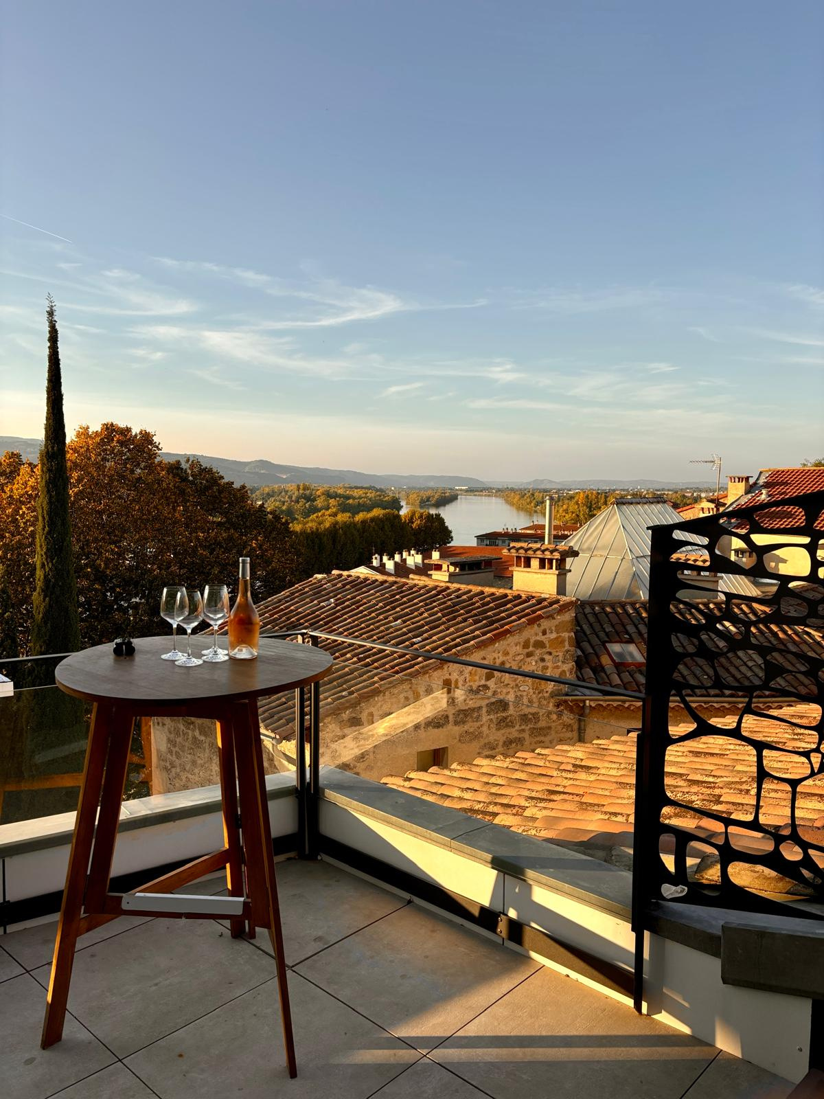 Une superbe terrasse panoramique offrant une vue à couper le souffle sur Crussol et les monts de l'Ardèche.