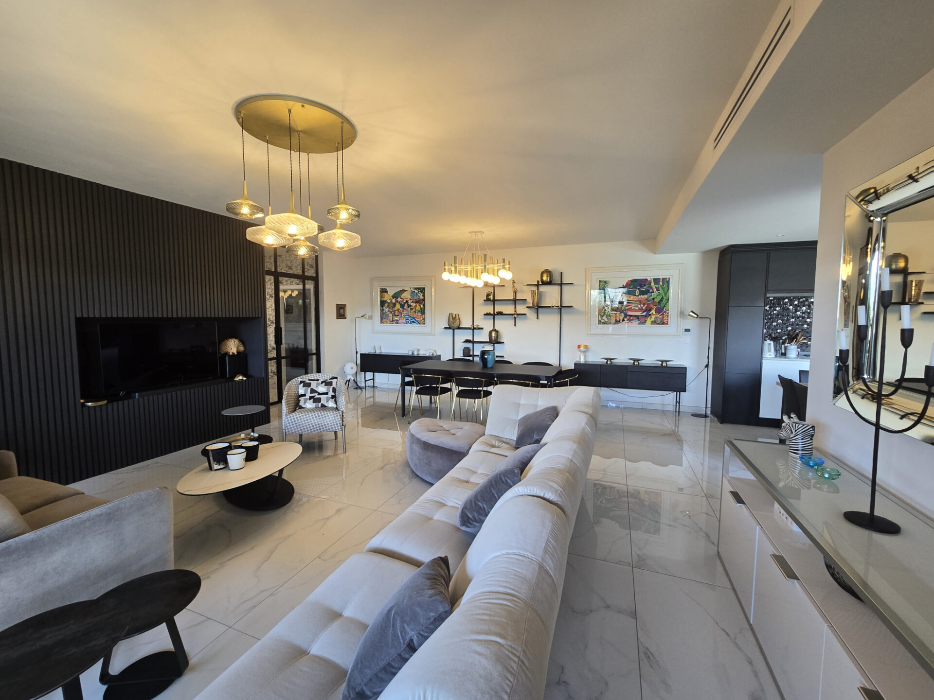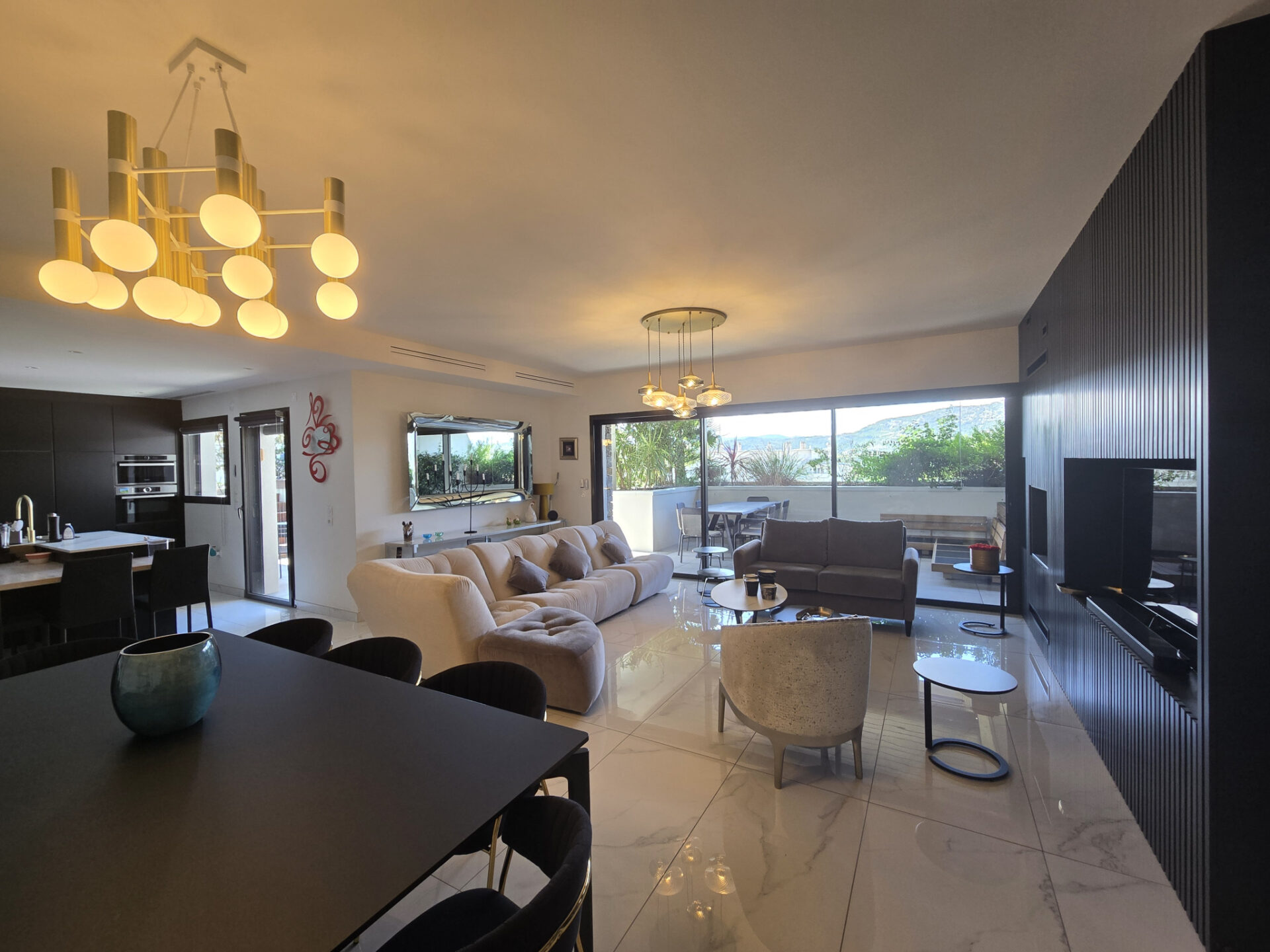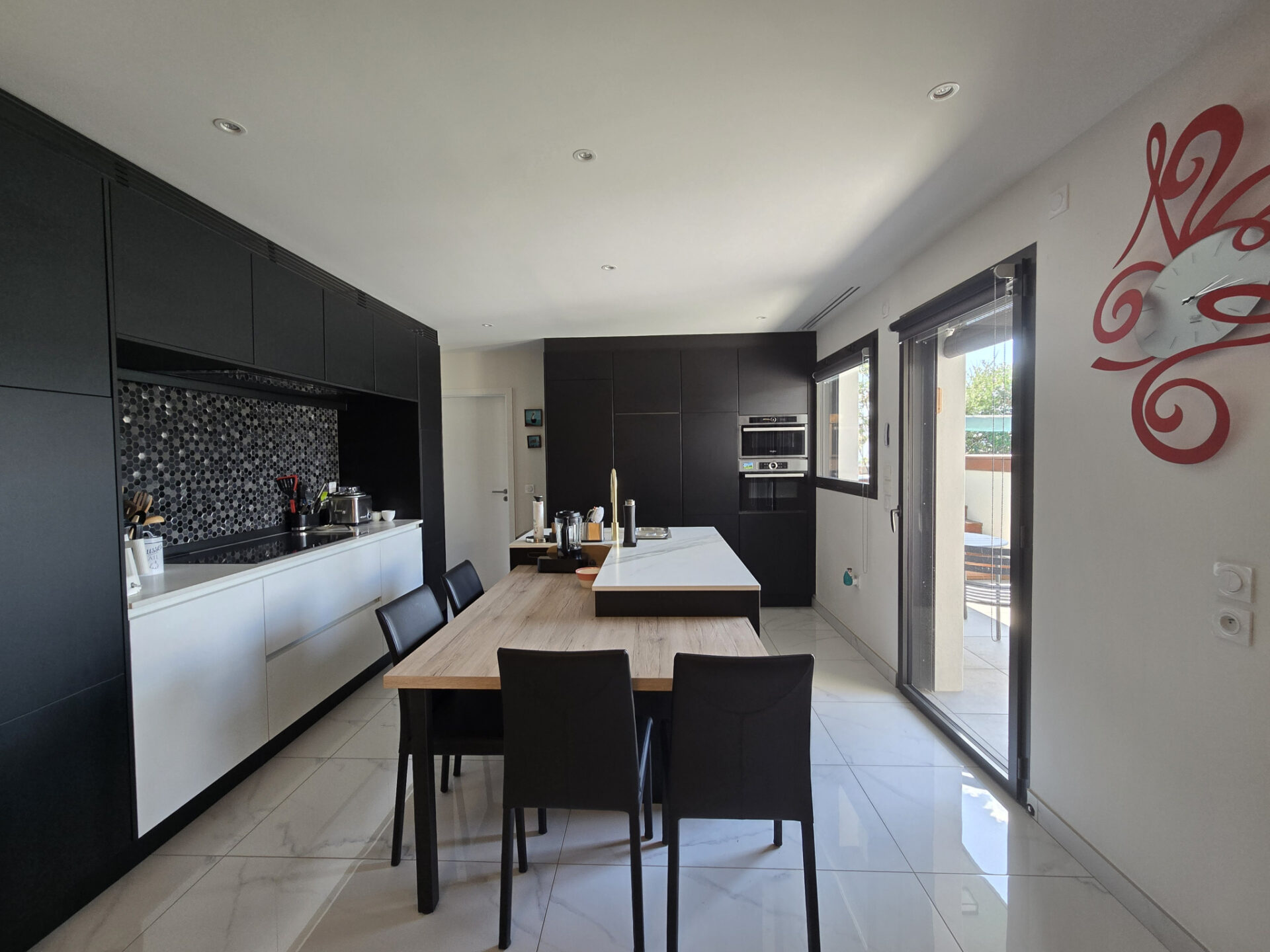 Un cadre de vie exceptionnel, espace de vie lumineux de 60 m2 avec cheminée contemporaine & cuisine intégrée.