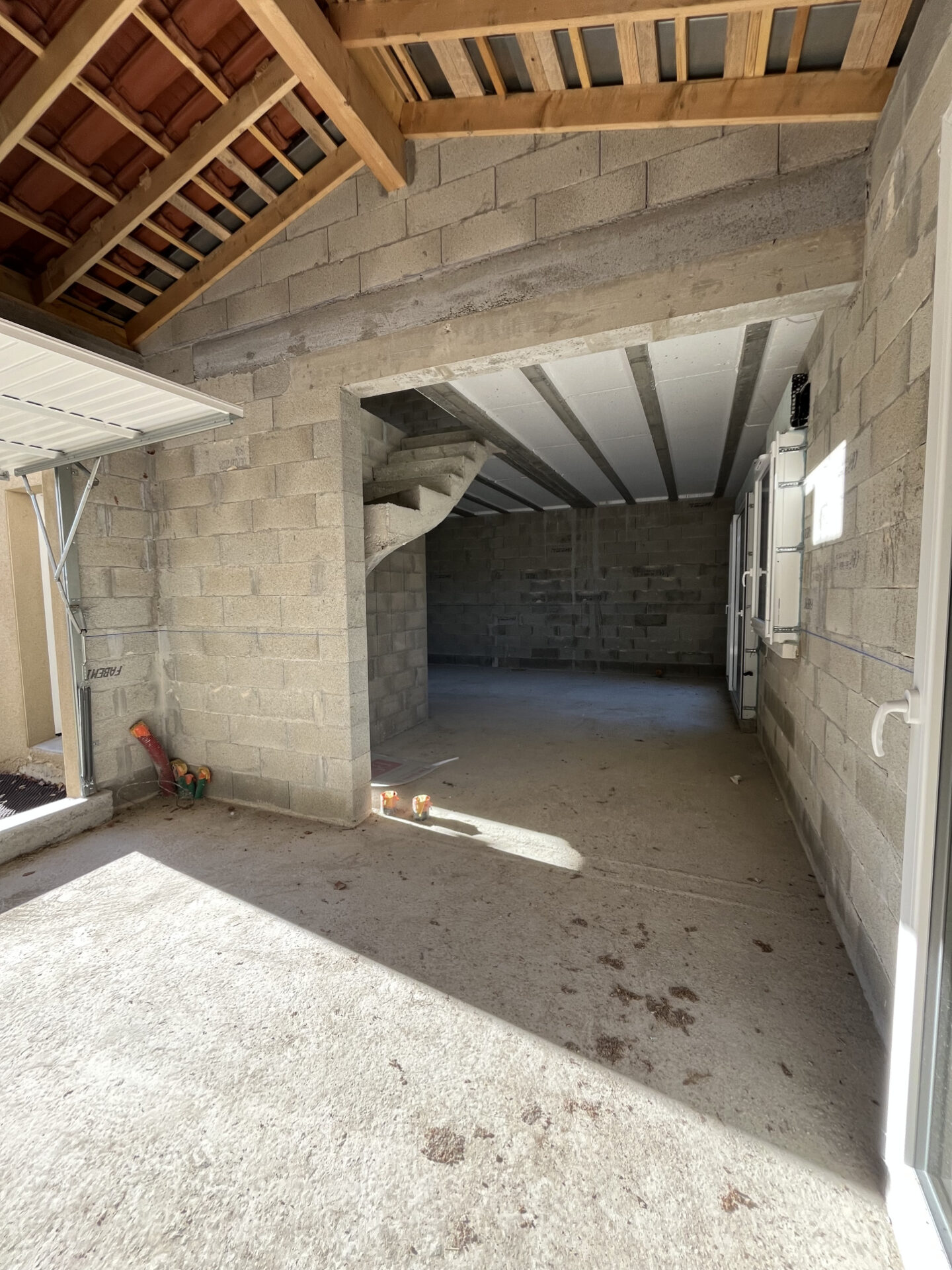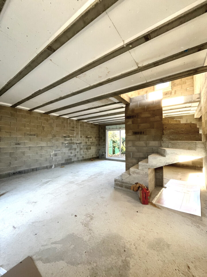 L’intérieur est entièrement modulable : jusqu’à quatre chambres possibles, installation d’un chauffage au sol envisageable, et menuiseries de qualité.