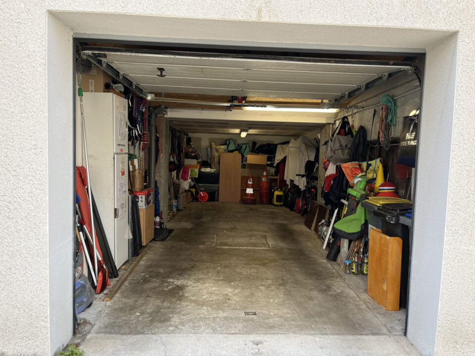 Un Garage avec porte automatisée et communiquant avec la maison complète ce bien.